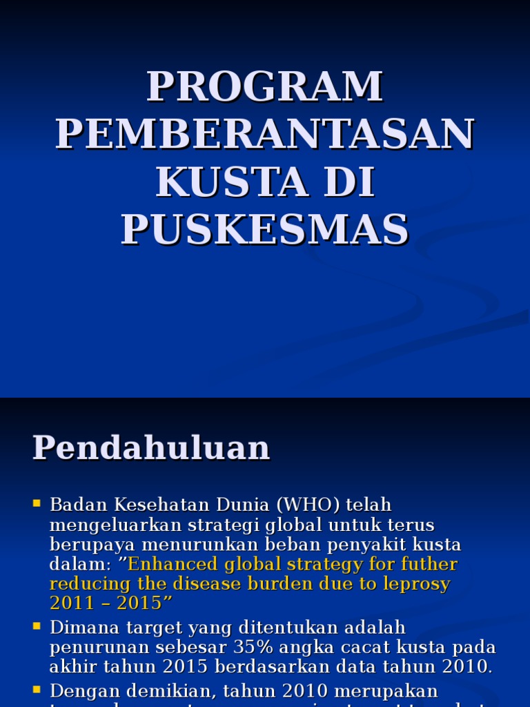 PENYAKIT KUSTA DAN PERKEMBANGANNYA DI MALAYSIA from image.slidesharecdn.com Penyakit kusta berasal dari bahasa india kustha, dan telah dikenal luas sejak era sebelum masehi. Penyakit kusta adalah penyakit infeksi kronis luka kulit & kerusakan saraf di lengan, kaki & area kulit di sekitar tubuh. Di sisi lain, penderita merespons dengan menyembunyikan penyakit kustanya karena takut dijauhi lingkungan sekitar. Kusta atau lepra adalah penyakit infeksi bakteri kronis yang menyerang jaringan kulit, saraf tepi, serta saluran pernapasan. Di malaysia, kes penyakit kusta direkodkan seawal tahun 1926. Penyakit kusta atau juga dikenali sebagai penyakit hansen juga leprosy, merupakan penyakit berjangkit yang disebabkan oleh jangkitan mycobacterium leprae. Di kampung yang berada di belakang rs dr. Hal ini disampaikan oleh dirjen pencegahan dan pengendalian penyakit kemenkes hm subuh terhadap kondisi relasi antara penderita kusta dan masyarakat umum di indonesia.